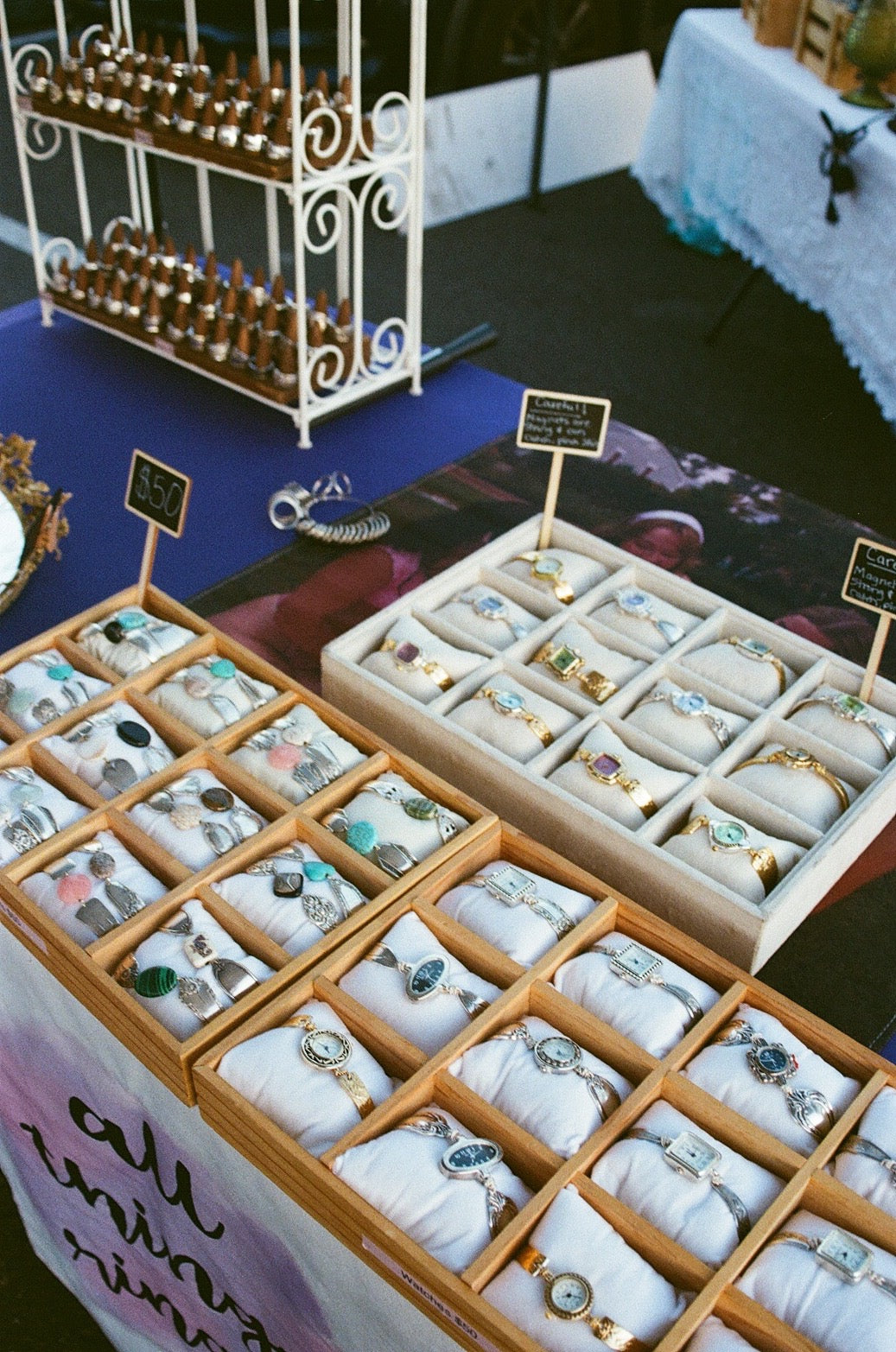 The Mint Market looks for businesses who put thought and effort into their booth. Businesses that sell vintage clothing, antiques, handmade items & baked goods.. unique services (like permanent jewelry or a photobooth for example!)